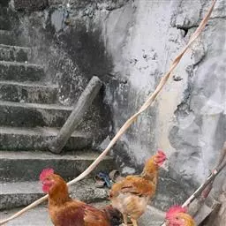 家鸡属于鸟纲,鸡形目,雉科。是由原鸡长期驯化而来,它的品种很多,如来航鸡、白洛克、九斤黄、澳洲黑等。仍保持鸟类某些生物学特性,如可飞翔,习惯于四处觅食,不停地活动。听觉灵敏,白天视力敏锐,具有神经质的特点,食性广泛,借助吃进砂粒石砾以磨碎食物。