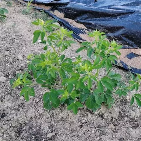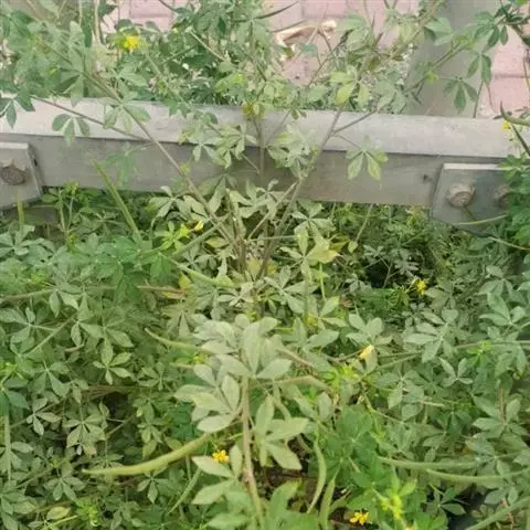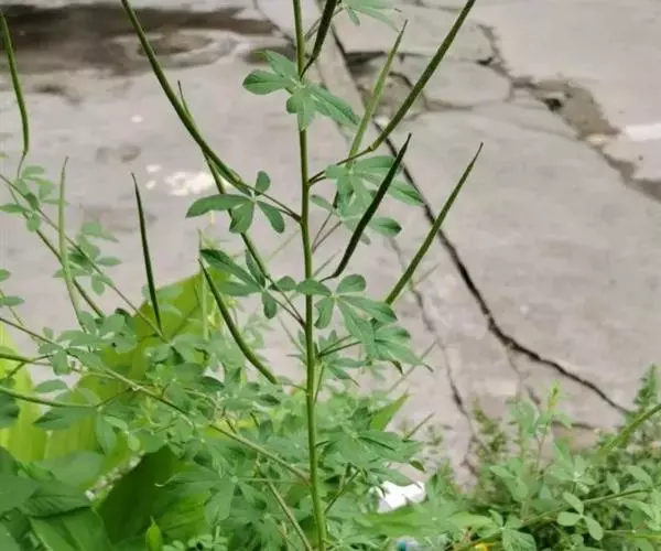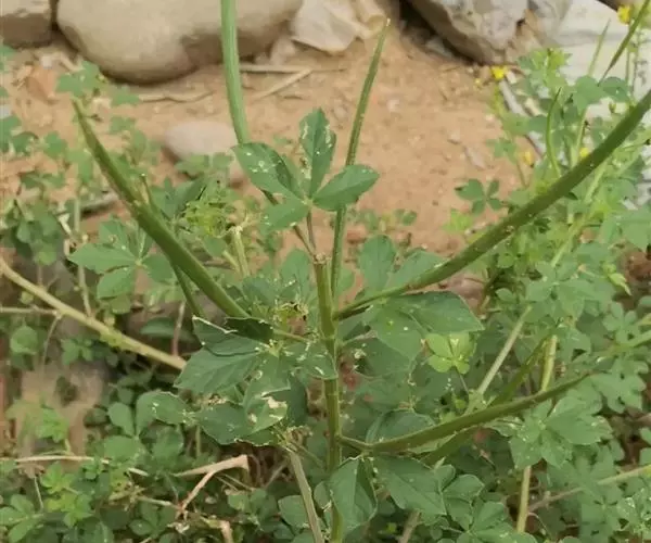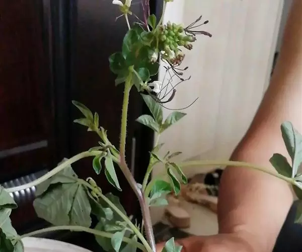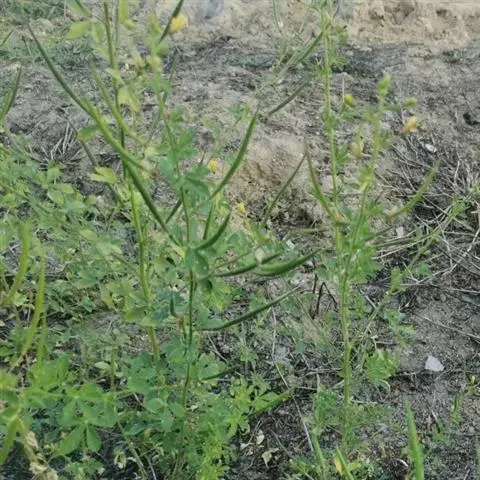 一年生直立草本,高0.3—1米,茎基部常木质化,干后绿黄色,有纵细槽纹,全株密被粘质腺毛与淡黄色柔毛,无刺,有恶臭气味。叶为具3—5(-7)小叶的掌状复叶,小叶薄草质,近无柄,倒披针状椭圆形,中央小叶最大,长1-5厘米,宽5—15毫米,侧生小叶依次减小,全缘但边缘有腺纤毛,观脉3-7对;叶柄长(1-)2—4(-6)厘米,无托叶。花单生于茎上部逐渐变小与简化的叶腋内,但近顶部则成总状或散房状花序,花梗纤细,长1-2厘米;萼片分离,狭椭圆形至倒披针状椭圆形,长6-7毫米,宽1—3毫米,近膜质,有细条纹,内面无毛,背面及边缘有粘质腺毛;花瓣淡黄色或桔黄色,无毛,有数条明显的纵行脉,倒卵形或匙形,长7-12毫米,宽3—5毫米,基部楔形至多少有爪,顶端圆形;雄蕊10-22(-30),花丝比花瓣短,花期时不露出花冠外,花约背着,长约2毫米;子房无柄,圆柱形,长约8毫米,除花柱与柱头外密被腺毛,花期时亦不外露,1室,侧膜胎座2,胚珠多数,子房顶部变狭而伸长,花柱长2—6毫米。柱头头状。果直立,圆柱形,劲直或稍镰弯,密被腺毛,基部宽阔无柄,顶端渐狭成喙,长6—9厘米,中部直径约3毫米,成熟后果瓣自顶端向下开裂,果瓣宿存,表面有多条多少呈同心弯曲纵向平行凸起的稜与凹陷的槽,两条胎座框特别凸起,宿在的花柱长约5毫米;种子黑褐色,直径1—1.5毫米,表面约有30条横向平行皱纹。无明显花果期,通常3月出苗,7月果熟。