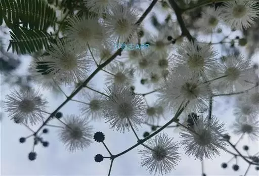 头状花序球形;花白色;花萼杯状,极小;花瓣长圆形,长约2毫米,仅基部连合;雄蕊8枚,花丝长4-5毫米。荚果带状,劲直,长3.5-4.5厘米,宽约6毫米,无刺毛,褐色,通常有5-7个荚节,成熟时荚节脱落而残留荚缘。