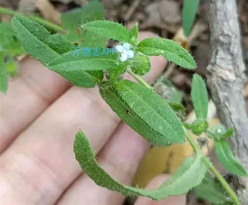 一年生草本。茎直立,斜升或平卧,高达60厘米,通常自基部分枝,被贴生糙毛。叶长圆状披针形或披针形,无柄或有极短的柄,长3-10厘米,宽0.5-2.5厘米,顶端尖或渐尖,边缘有细锯齿或有时仅波状,两面被密硬糙毛。