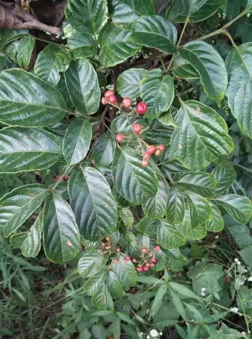 果实近球形,直径0.6-0.8厘米,有种子2-4颗;种子倒卵圆形,顶端圆形,基部喙尖锐,种脐在种子背面中部呈椭圆形,背部中棱脊突出,表面有肋纹突起,腹部中棱脊突出,两侧洼穴外观不明显,微下凹,周围有肋纹突出。花期4-7月,果期8-11月。