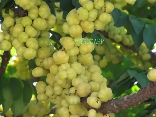 西印度醋栗是大戟科叶下珠属常绿灌木或小乔木,树高2-5米,夏至秋季开花,花后座果率较高,成熟果实扁球形,具凸稜,淡黄绿色,可食用,生食口感爽脆, 水分多,但味酸,主要用于制造果酱、果汁、或是腌渍后食用。西印度醋栗植株优美,花小,粉红色,开在老枝干上,花后结许多青色的小果,娇小可爱。因为怕冻,植株种植在温室内,果实每年六月初成熟,色泽圆嫩,玉质透明,有纵棱,细看像微型的水晶小南瓜,又象是一群微笑的玉娃。