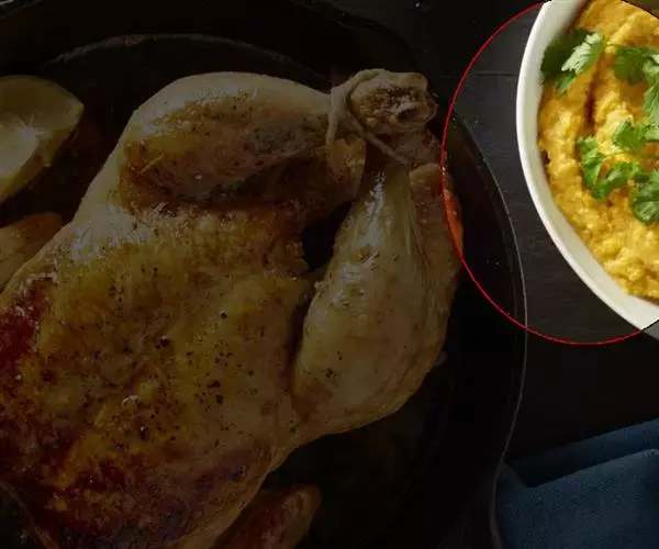 4. 另取一深锅,放入黄油热锅溶化后,加入面粉、盐、豆蔻粉拌炒至化开后,再倒入用微波加热至八分热的鲜奶,一起搅拌至呈糊状,作成白奶油酱备用;