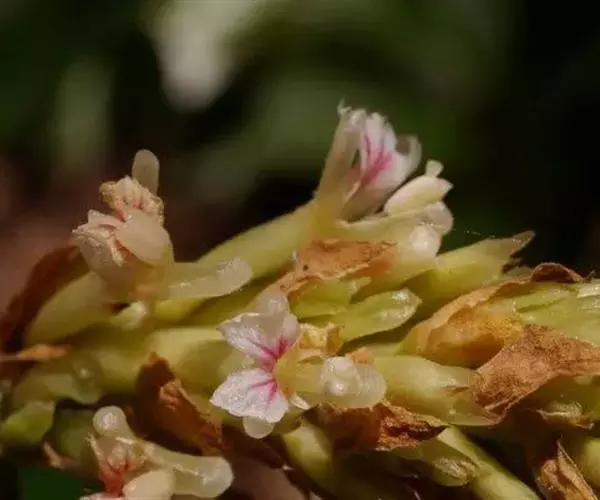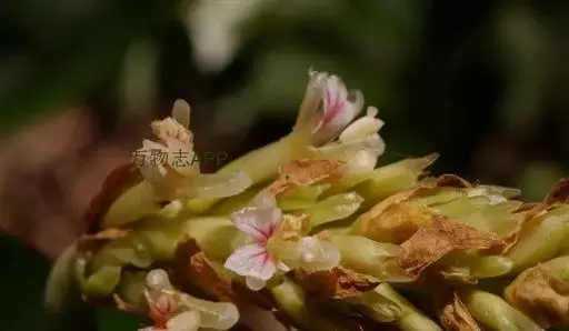 穗状花序顶生,长10-16厘米,总花梗近于无,基部具一线形的总苞片,长8-9厘米,宽8-10毫米;苞片披针形,或卵形,长1.5-2.5厘米,密集;每一苞片内有3枚小苞片和3朵花;小苞片披针形,长5-10毫米,苞片和小苞片均密被绒毛,果时宿存;花芳香;花萼筒状,长1-1.5厘米,顶端具明显三齿,外被绒毛;花冠管长1.2厘米,裂片长圆形,长6毫米,内凹;唇瓣菱状卵形或不明显三裂,长7毫米,中部宽5毫米,顶端2裂,边缘波状,中央有条纹;花丝长5毫米,花药长4毫米;柱头杯状,具缘毛,超出于药室之上。