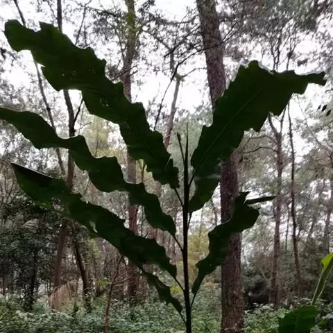 移栽定植:沙播种子约4个月后出苗,出苗率大于90%,且出苗整齐。出苗后2个月左右(翌年5-6月)、当幼苗长出2片约4厘米的叶片后,及时移栽至有散射光的疏林下,株行距50厘米×50厘米,栽后覆土压实,浇足定根水,移栽及易成活。