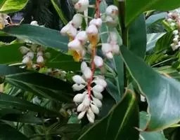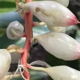 密苞山姜是姜科,山姜属多年生草本植物,株高可达1.5米。叶片椭圆状披针形,顶端渐尖,并具细尾尖,基…