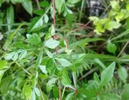 叶为2-4回羽状复叶,小叶卵椭圆形至长圆披针形,长5-15厘米,宽2.5-8厘米,顶端渐尖,基部阔楔形,稀近圆形,边缘有急尖锯齿,上面绿色,下面浅绿色,两面无毛;侧脉6-11对,网脉在叶片下面明显,但不突出;叶柄长6-13厘米,中央小叶柄长1.5-4厘米,侧生小叶柄长0.5-1.5厘米,无毛。