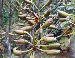 蒴果圆柱形,长3.5-4厘米,直径约4毫米,具纵肋,先端截形,花柱宿存。花期3-4月,稀5-6月,果期7-10月。