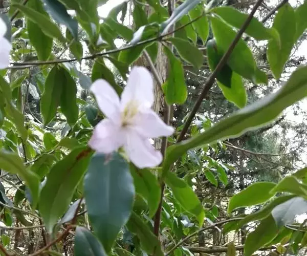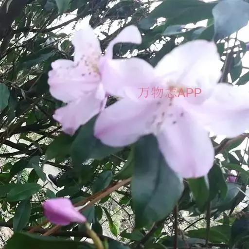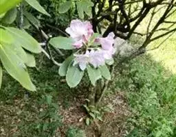 鹿角杜鹃(学名:Rhododendron latoucheae Franch.):常绿灌木或小乔木,高可达5米;小枝开展,灰色或淡白色,无毛。叶集生,近于轮生,革质,卵状椭圆形或长圆状披针形,上面深绿色,具光泽,下面淡灰白色,叶柄无毛。花芽长圆状锥形,单生枝顶叶腋,花梗无毛;花萼不明显;花冠白色或带粉红色,裂片开展,长圆形,花丝扁平,子房圆柱状,褐色,蒴果圆柱形,花柱宿存。3-4月开花,稀5-6月,7-10月结果。