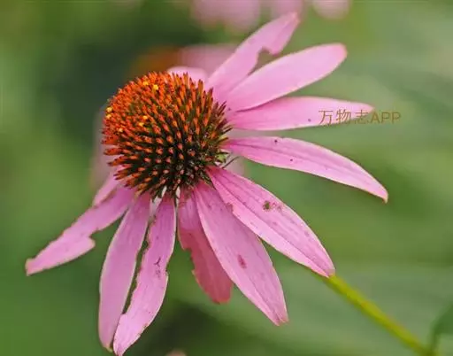 松果菊(学名:Echinacea purpurea (Linn.) Moench)是菊科松果菊属植物,多年生草本植物。高50-150厘米,全株有粗毛,茎直立;叶缘具锯齿。基生叶卯形或三角形,茎生叶卯状披针形,叶柄基部略抱茎。头状花序,单生或多数聚生于技顶,花大,直径可达10厘米:花的中心部位凸起,呈球形,球上为管状花,橙黄色;种子浅褐色,外皮硬。花期夏秋。 [1-2]
