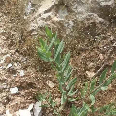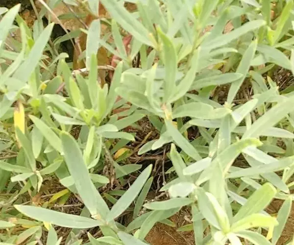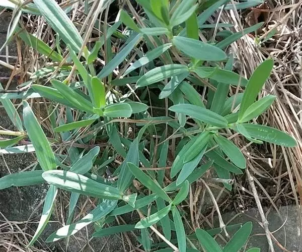 叶片近革质,稍厚,长圆形,长4-8厘米,宽5-15毫米,顶端短凸尖,基部稍狭,两叶基相连成短鞘状,微抱茎,脉3-5条,中脉明显,上部叶较狭,近线形。