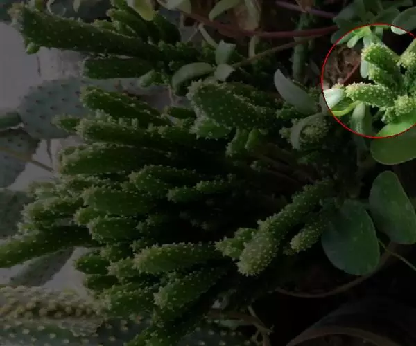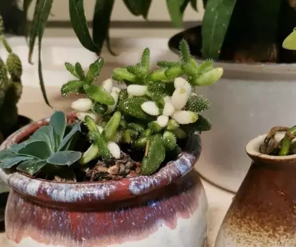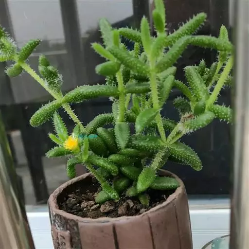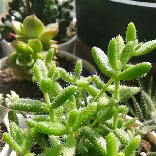 雷童枝繁叶密,青翠可人,小巧玲珑的肉质叶上布满了肉质刺,酷似一只只绿色小刺猬,奇特而可爱。黄、白色的小花虽然不大,但星星点点地点缀在青枝绿叶之间,给人以素雅清奇之感。