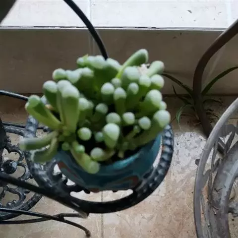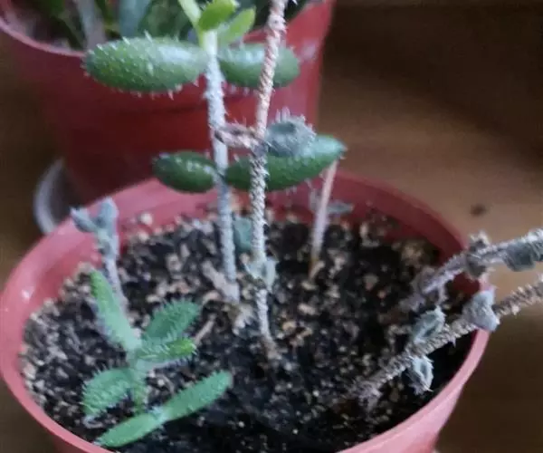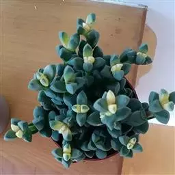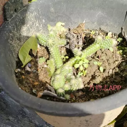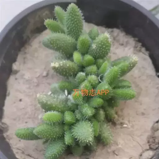 雷童为多年生肉质草本植物,呈分枝密集的灌木状,高 雷童开花 约30厘米,二歧分枝,老枝灰褐色或浅褐色,新枝淡绿色,上有白色小突起。肉质叶卵圆半球形,长1~1.3厘米,厚0.6~0.7厘米,基部合生,暗绿色,表皮具白色半透明的肉质刺,老叶的肉质刺常脱落,留下圆形疵状疤痕。花单生,具短梗,花很小,径仅1.2一1.5厘米,花白色或淡黄色。