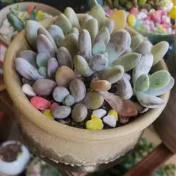 生石花,番杏科生石花属多年生肉质草本植物。植株几乎无茎;花朵较大,颜色艳丽,呈多边形,…