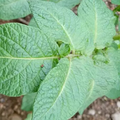 ⑴花叶型。①普通花叶。一般植株发育较正常,叶片基本不变小,仅在中上部叶片表现轻微花叶或有斑点,叶片很少卷曲或不平。这种类型分布极广,危害较轻。②重花叶。又称条斑花叶。病株叶片变小,叶脉、叶柄及茎上均有黑褐色坏死条斑,因而叶片呈现斑驳花叶或枯斑,后期植株下部叶片干枯,但不脱落,表现为垂叶坏死。这种类型分布较广,危害较重。③皱缩花叶。发病植株显著矮化,叶片严重皱缩、变小,花叶严重,叶脉、叶柄及茎上均有黑褐色坏死条斑,小叶叶尖向下弯曲,全株呈绣球状。病株落蕾、不开花,严重时早期枯死。这种类型分布广泛,危害严重,可减产60%~80%,是我国最重要的马铃薯病毒病。