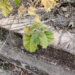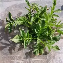 ⑶束顶型。病株叶柄与茎呈锐角着生,向上束起,叶片变小,常卷曲呈半闭合状,全株失去光泽的绿色,有的植株顶部叶片呈紫红色。薯块变长,芽眼突起,芽眉突出,有时表皮有纵裂纹。