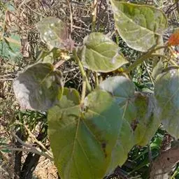 晚疫病可发生在叶、叶柄、茎和块茎上。叶部病斑多从叶尖或叶缘开始发生,产生圆形或半圆形暗绿或暗褐色大斑,边缘不明显。在空气湿度大时,病斑迅速扩大,可扩及叶的大半以至全叶,并可沿叶脉侵入叶柄及茎部,形成褐色条斑,使叶片萎蔫下垂,最后整个植株变为焦黑,呈湿腐状。在病斑边缘有一圈白霉,薯块感病形成淡褐色或灰紫色不规则形病斑,稍微下陷,病斑下面的薯肉变褐色,病薯易被其他腐生菌侵染而软腐。