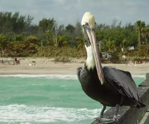 褐鹈鹕:是鹈鹕家族中体型最小的成员。体型粗大,体重6.5-9千克。嘴形宽大直长,上嘴尖端朝下弯曲,…