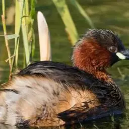 小鸊鷉(学名:Tachybaptus ruficollis):是一种潜鸟。体长25-29厘米,翼展 40-45厘米,体重100-200克,寿命13年。枕部具黑褐色羽冠;成鸟上颈部具黑褐色杂棕色的皱领;上体黑褐,下体白色。
