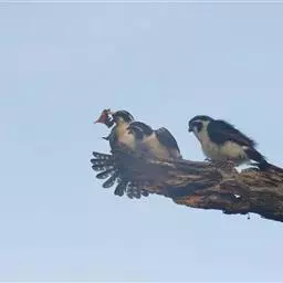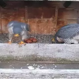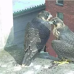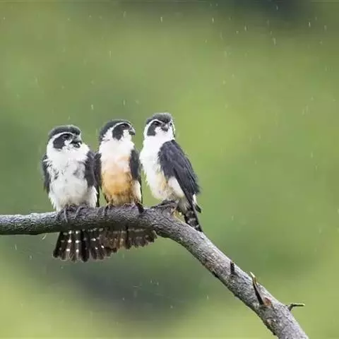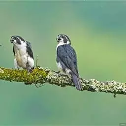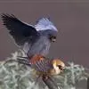 美洲隼为一夫一妻制,繁殖季节在3~7月份,每巢产卵4~6枚,孵化期28~32天,羽毛生长完全需要30~38天。雌鸟1岁性成熟,并且可以繁殖,美洲隼寿命10岁左右。 繁殖期为5~7月。通常营巢于悬崖、山坡岩石缝隙、土洞、树洞和喜鹊、乌鸦以及其它鸟类在树上的旧巢中。巢较简陋,由枯枝构成,里面铺垫有草茎、落叶和羽毛。每窝产卵通常4~5枚,偶尔有多至8枚和少至3枚的。如果巢卵被破坏,通常还要下补偿性的一窝,但产卵的数量则明显减少,通常为2~3枚。卵的颜色为白色或赭色,密被着红褐色的斑点,但也有的 美洲隼 仅在钝端被有少许红褐色斑。通常每隔1天或2天产1枚卵,产完第一枚卵后,雌鸟就不再离巢,时而卧伏于巢内,时而站立在巢口外突出的岩石上。孵卵主要由雌鸟承担,雄鸟承担护卫任务,每隔一段时间就飞回巢区附近的石壁上或树冠上,偶尔也替换雌鸟孵卵,孵化期28~30天。雏鸟为晚成性,刚孵出时体重仅13~14克,全身被有稀疏的白色绒羽,头大颈细,呈爬伏状态,勉强能够摇头,10天后变为淡灰色绒羽。雏鸟由亲鸟共同喂养大约30天左右离巢。
