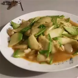 配 料: 年糕、洋葱、小油菜、葱、白沙糖、油、辣肠。