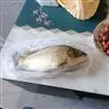 3、将解冻好的冷冻鱼饼切成片,备用;