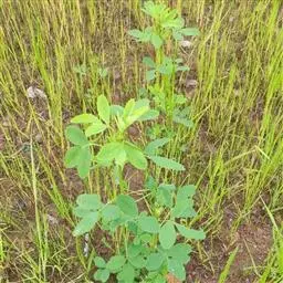 一年生或二年生直立草本,高0.6-1.5米,有时蔓生或缠绕,茎密被短柔毛。羽状复叶具3小叶;托叶披针形,长5-10毫米,脉纹显露;小叶狭椭圆形至卵状披针形,长3-8厘米,宽1-3.5厘米,先端急尖,基部楔形,上面无毛,下面密被短柔毛或薄被长柔毛,无裂片或微具裂片;叶柄长1.5厘米。