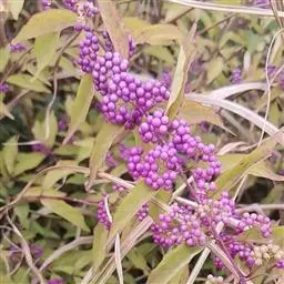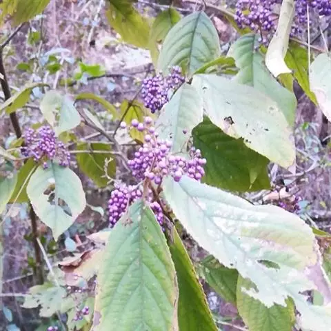 紫珠是唇形科、紫珠属落叶灌木,高约2米;叶片卵状长椭圆形至椭圆形,顶端长渐尖至短尖,基部楔形,…