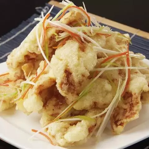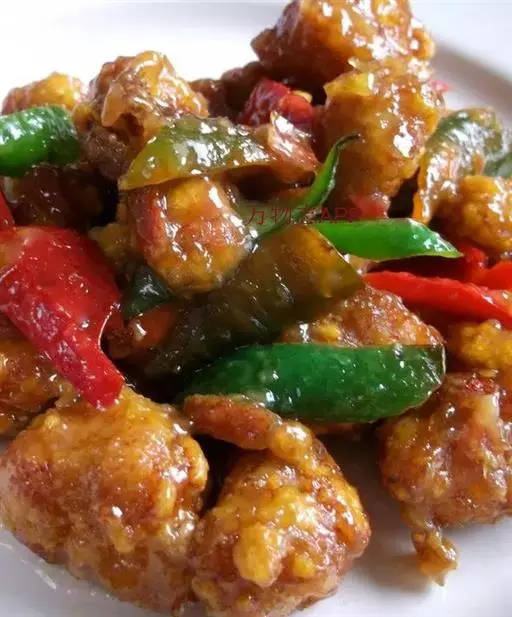 炸时要待油沸后才可放下肉块,沸油可把肉外层的生粉收紧不脱落。炸之外层硬身时捞起,约2分钟后再放入沸油中炸至金黄色,然后爆炒料头,勾芡,将肉块兜匀,使每块肉都能沾满芡汁,上碟后不应有芡汁泻在碟上。