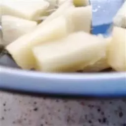 (1)葱洗净切成3公分小段,凤梨等分4片,青椒、蕃茄切成小方块。