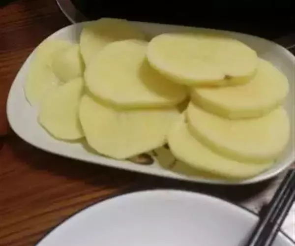 2:把五花肉扑上生粉,放5成热的油锅里炸熟,捞起,再烧热油锅炸至金黄色,再捞起备用
