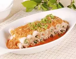 梅菜扣肉,汉族传统名菜,属客家菜 。制作材料有五花肉、梅菜、葱白、姜片等。