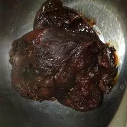 不断翻炒,不能糊锅哦,当酱汁变粘稠、红亮时,放入炸好的肉块、青椒,菠萝块,翻炒几下,肉块上均匀地裹
