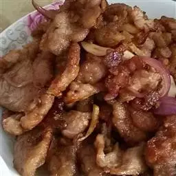 猪大排骨肉横面片开,先用刀背拍松後,切成小块,用腌料拌腌半小时青椒去籽切片,洋葱切片备用猪肉沾里上乾太白粉后,投入热油中用中火炸至金黄,捞出,待油再烧热一次,用大火炸30秒,至外表酥脆,捞出用2汤匙油爆香洋葱及酸果及青椒,放下综合调味料煮滚,关火后,放下排骨肉一拌合便可装盘。