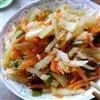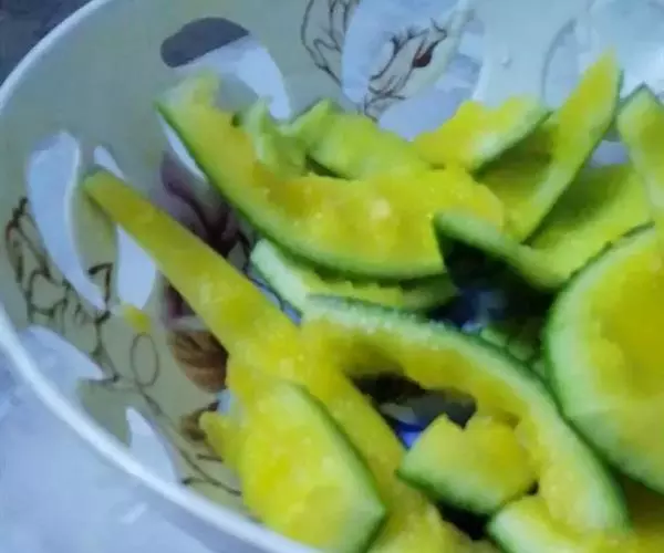 白萝卜、胡萝卜及黄瓜均切成菱角小块,用盐腌1小时後,用冷开水冲洗干净,泡入糖醋水【白糖、白醋加水】中腌2小时以上
