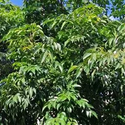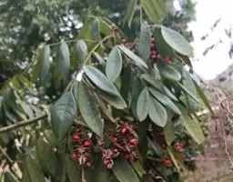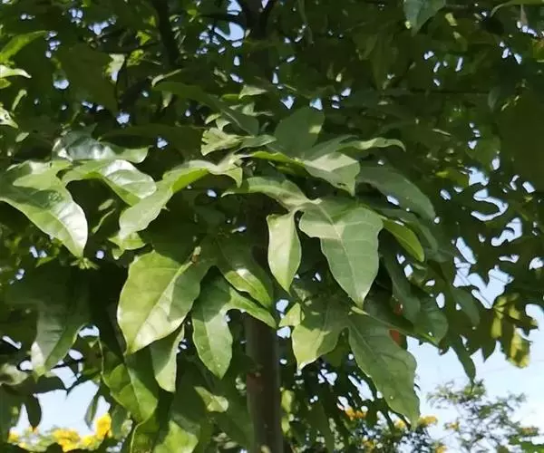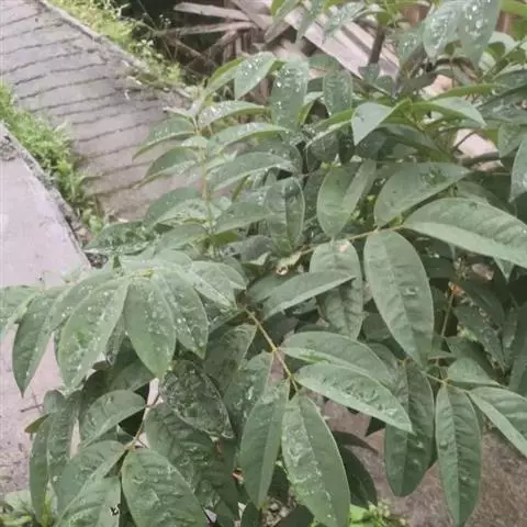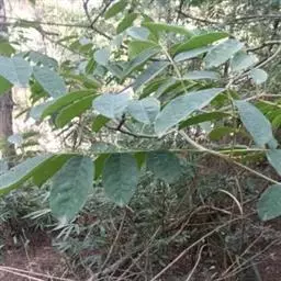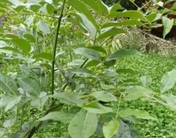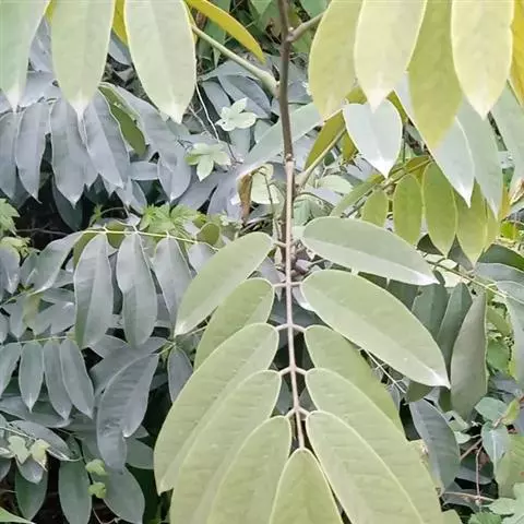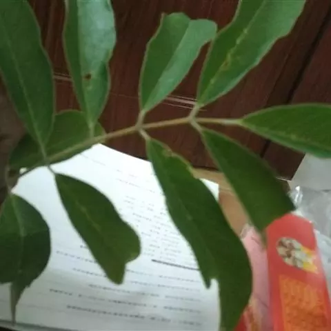 树皮灰色或灰黑色;木质部有粘液。幼枝被淡褐色短柔毛,渐变无毛。奇数羽状复叶,长16-22.5厘米;叶柄长2-3.5(6.5)厘米,叶轴长2.5-9厘米,叶轴在最上部一对小叶处延长0.2-2.6厘米生顶小叶;小叶3(-4)对,薄革质,披针形,长12-15厘米,宽约4 (-5)厘米,先端钝或渐尖,两面均无毛,侧脉5-7对;小叶柄长3-6毫米,有凹槽及短柔毛或近无毛。