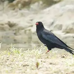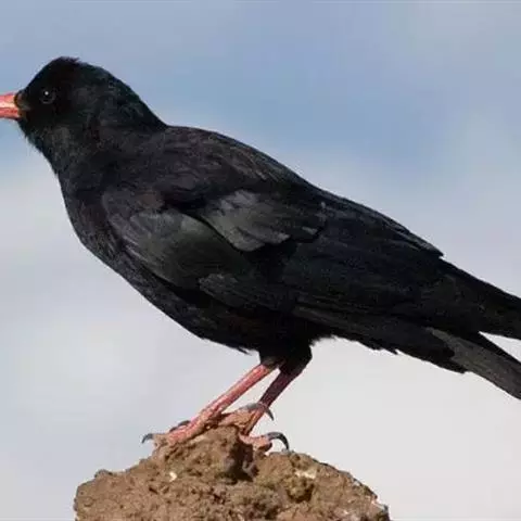 甜美的淌水般的preeeep声及降调的哨音sweeeoo,比红嘴山鸦叫声尖厉。告警时发出卷舌的churrr声,进食时发出恬静的吱吱鸣啭。