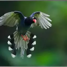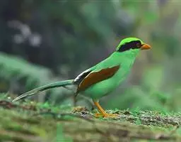 蓝绿鹊:中型鸟类,共有5个亚种。体长36-38厘米。尾长,嘴、脚红色。通体羽色主要为草绿色,…