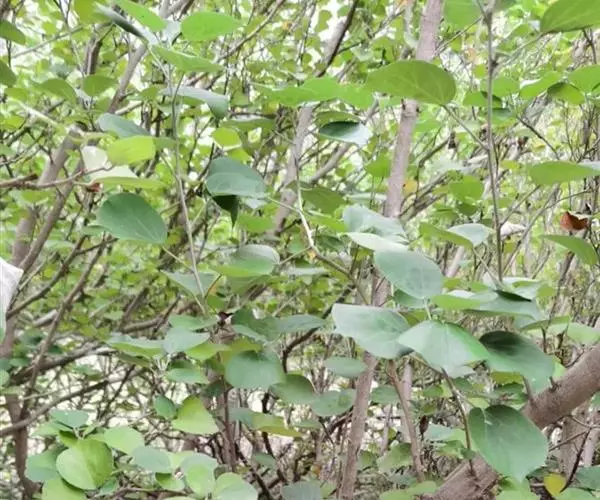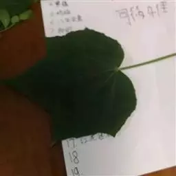 海滨木槿为落叶小乔木,株高3-5米,胸径20厘米,扁球形树冠,枝叶繁盛。厚纸质单叶互生,扁圆形、倒卵形或宽倒卵形,宽3-7厘米,长2.5-6厘米,先端钝近平,具短突尖,基部圆形或浅心形,叶缘中上部具细圆齿,叶面绿色光滑、具星状毛,叶背灰白色或灰绿色,密被毡状绒毛,掌状脉5-7;叶柄长0.8-2.5厘米,托叶长1厘米,早落。