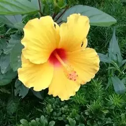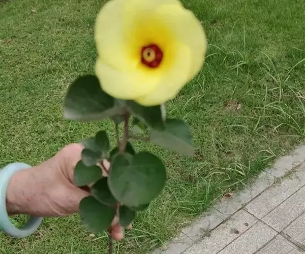 海滨木槿(学名:Hibiscus hamabo Sieb. et Zucc.)是锦葵科木槿属植物,落叶小乔木,株高3-5米,胸径20厘米,扁球形树冠,枝叶繁盛。厚纸质单叶互生,扁圆形、倒卵形或宽倒卵形,先端钝近平,具短突尖,基部圆形或浅心形,叶缘中上部具细圆齿,叶面绿色光滑、具星状毛。花两性,单生于近枝端叶腋,花梗长0.5-1厘米,小苞片数8-10,花萼长2厘米,花冠直径5.8厘米。三角状卵形蒴果,长2厘米;褐色种子呈肾形,长0.5厘米,具腺状乳突。