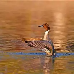 针尾鸭 越冬期栖息于各种类型的河流、湖泊、沼泽、盐碱湿地、水塘以及开阔的沿海地带和海湾等生境中,繁殖期主要栖息于内陆大型湖泊、流速缓慢的河流、河湾及其附近的沼泽和湿草地。