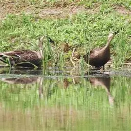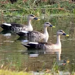 斑嘴鸭是雁形目鸭科鸭属鸟类。李文华,旭日干,中国自然资源通典 辽宁卷,内蒙古教育出版社,2015,第361页雄鸟体羽大部棕褐色;嘴蓝黑色,先端黄色,嘴基至耳区贯眼线黑褐色;虹膜黑褐色,外圈橙黄色;眉纹黄白色,头顶、额、枕部暗棕褐色;上背灰褐色,下背褐色;翼镜蓝绿色带紫色金属光泽;胸部棕白色杂褐色斑,腹褐色;腰、尾上覆羽、尾羽黑褐色,尾下覆羽黑色;跗蹠和趾棕黄色,爪黑色。雌鸟嘴端黄斑不明显,下体自胸以下淡白色,杂暗色斑。因嘴端有黄斑而得名。斑嘴鸭分布于中国各省区,栖息于河流、湖泊、水塘及沼泽等湿地中。善游泳、行走,游泳时尾露出水面,除繁殖期外,常成群活动,也和其他鸭类混群。主食植物的种子、嫩芽和幼苗等植物性食物,也食昆虫、软体动物等动物性食物。繁殖期5—7月,以干草和绒羽在岸边草丛中做巢,1年繁殖1窝,每窝产卵8—14枚,孵化期24天。斑嘴鸭被列入中国国家林业局2000年8月1日发布的《国