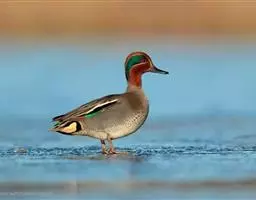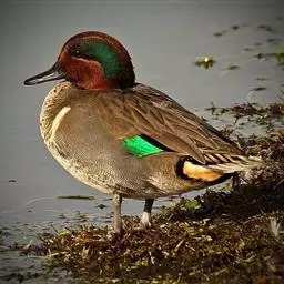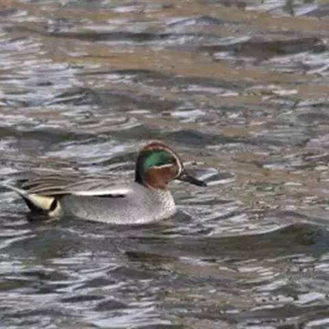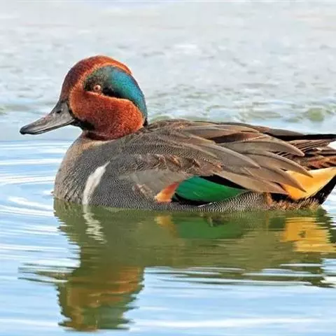 绿翅鸭是小型鸭类,体长37厘米,体重约0.5千克。嘴脚均为黑色。雄鸟头至颈部深栗色,…