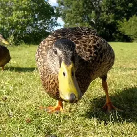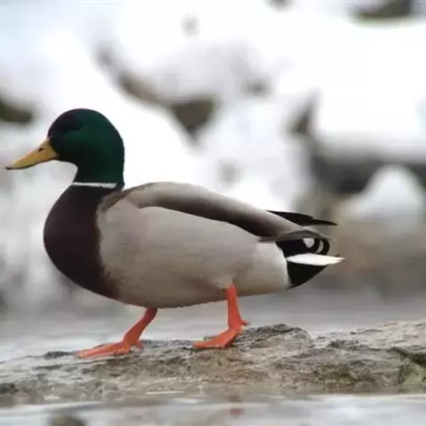 绿头鸭属游禽,大型鸭类。体长47-62厘米,体重大约1千克,外形大小和家鸭相似。雄鸟嘴黄绿色,脚橙…