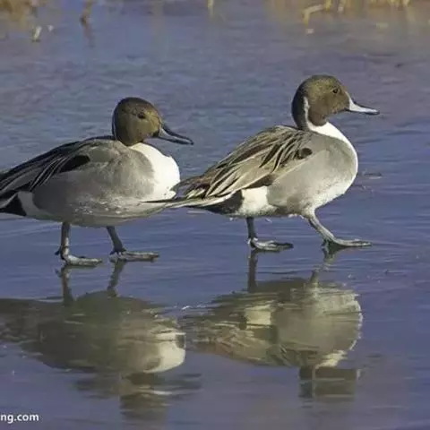 针尾鸭(学名:Anas acuta):是鸟纲、鸭科的中型游禽,属水鸭类。体长43-72厘米,体重0.5-1千克。雄鸭背部满杂以淡褐色与白色相间的波状横斑,头暗褐色,颈侧有白色纵带与下体白色相连,翼镜铜绿色,正中一对尾羽特别延长。雌鸭体型较小,上体大都黑褐色,杂以黄白色斑纹,无翼镜,尾较雄鸟短,但较其他鸭尖长。