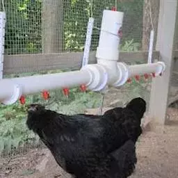 饮水器式样有手提式和吊挂式两种,1-8日龄的雏鸡用手提式的饮水器,容量为0.5千克,每70-80羽鸡需要一只;9日龄后更换较大的中型饮水器,容量2千克,每70-80羽鸡提供一只;如果用吊挂式自动饮水器,每125羽鸡配置一个;如以自动饮水槽供水,每羽鸡应占饮水位置为2厘米。