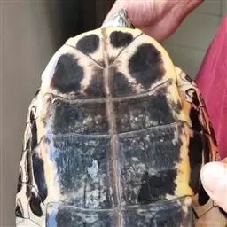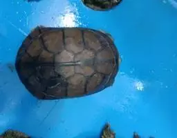 雌雄鉴别:雌龟颈盾较细,尾短,尾柄粗,体长比体宽大20毫米,雄龟无颈盾或颈盾极细小,尾细长,尾端角质突明显。