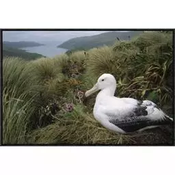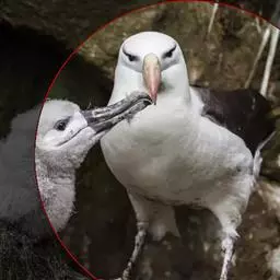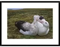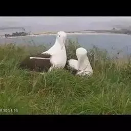 乌信天翁雏鸟 乌信天翁为一夫一妻制,9~12月进入繁殖期,每次产卵一枚,由雌性共同孵化,孵化期为65~75天。