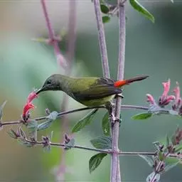 火尾太阳鸟为太阳鸟科太阳鸟属的鸟类。体长20厘米,色彩艳丽。雄鸟红色,具形长的艳猩红色中央尾羽。…