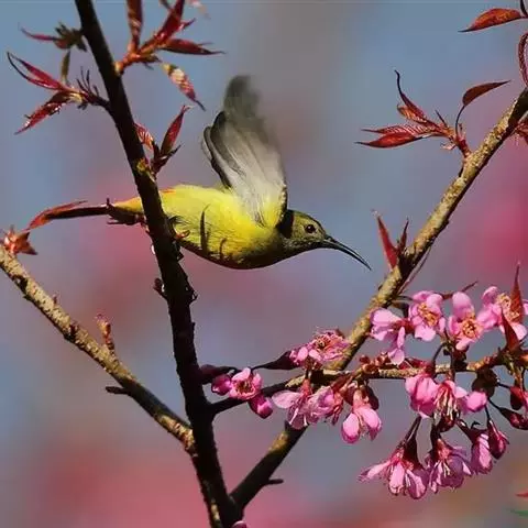 黄腹花蜜鸟是雀形目太阳鸟科花蜜鸟属鸟类。体型较小、喙略短而弯、腹部黄色。…